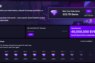 Show up daily. Stack your multiplier. Maximize your Gems. Earn more $VELVET.
