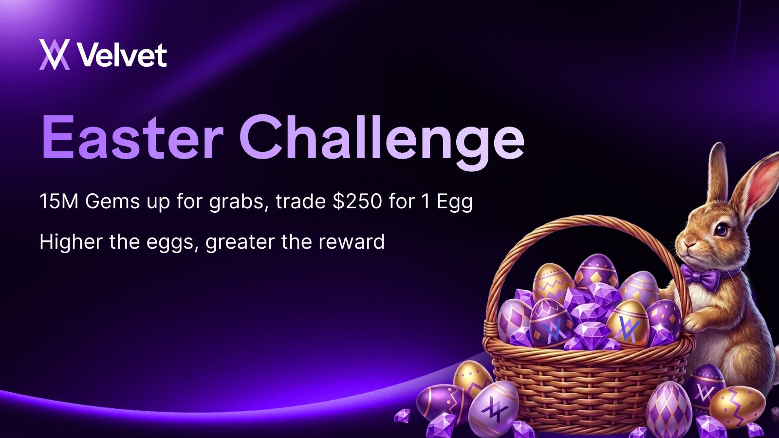 From April 3 to April 6, every eligible trade on Velvet helps you collect more Easter Eggs and increase your chances of winning.