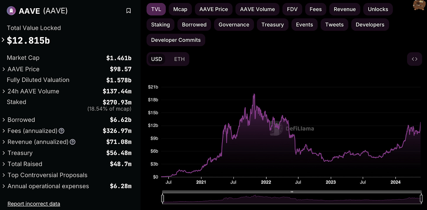 Since its release in 2020, Aave has grown to become the third-largest DeFi protocol by TVL, with $12.8 billion, making it one of the most trusted protocols in DeFi.