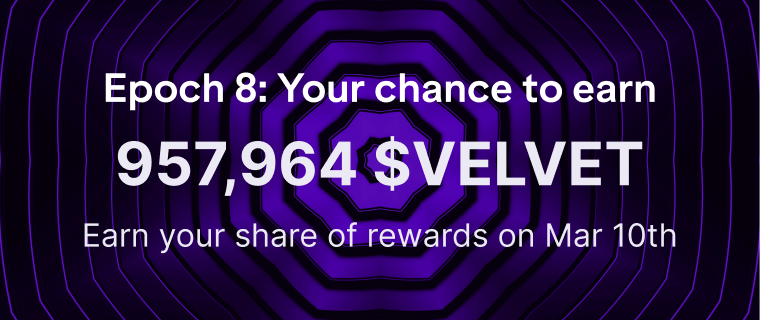 From February 10 through March 10, users will compete for 957,964 $VELVET, distributed at the end of the epoch.