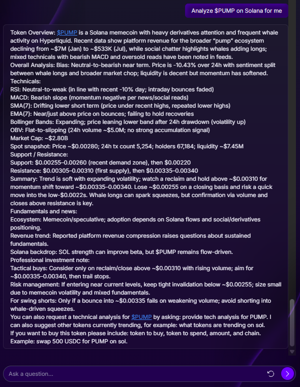 Pro tip: click tickers in the chat to instantly pull up charts and token details on the right side of your screen.