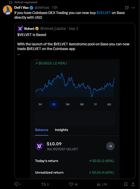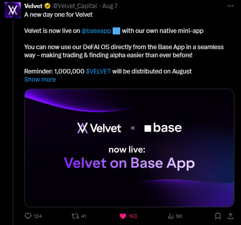 Went live on the Base App, making it easier than ever to access Velvet from the Base ecosystem