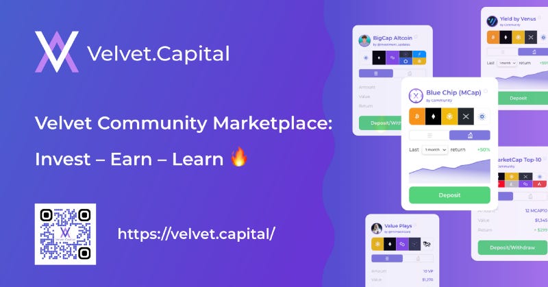 The best investing strategies of the crypto world all in one place! Velvet Community Marketplace now live!
