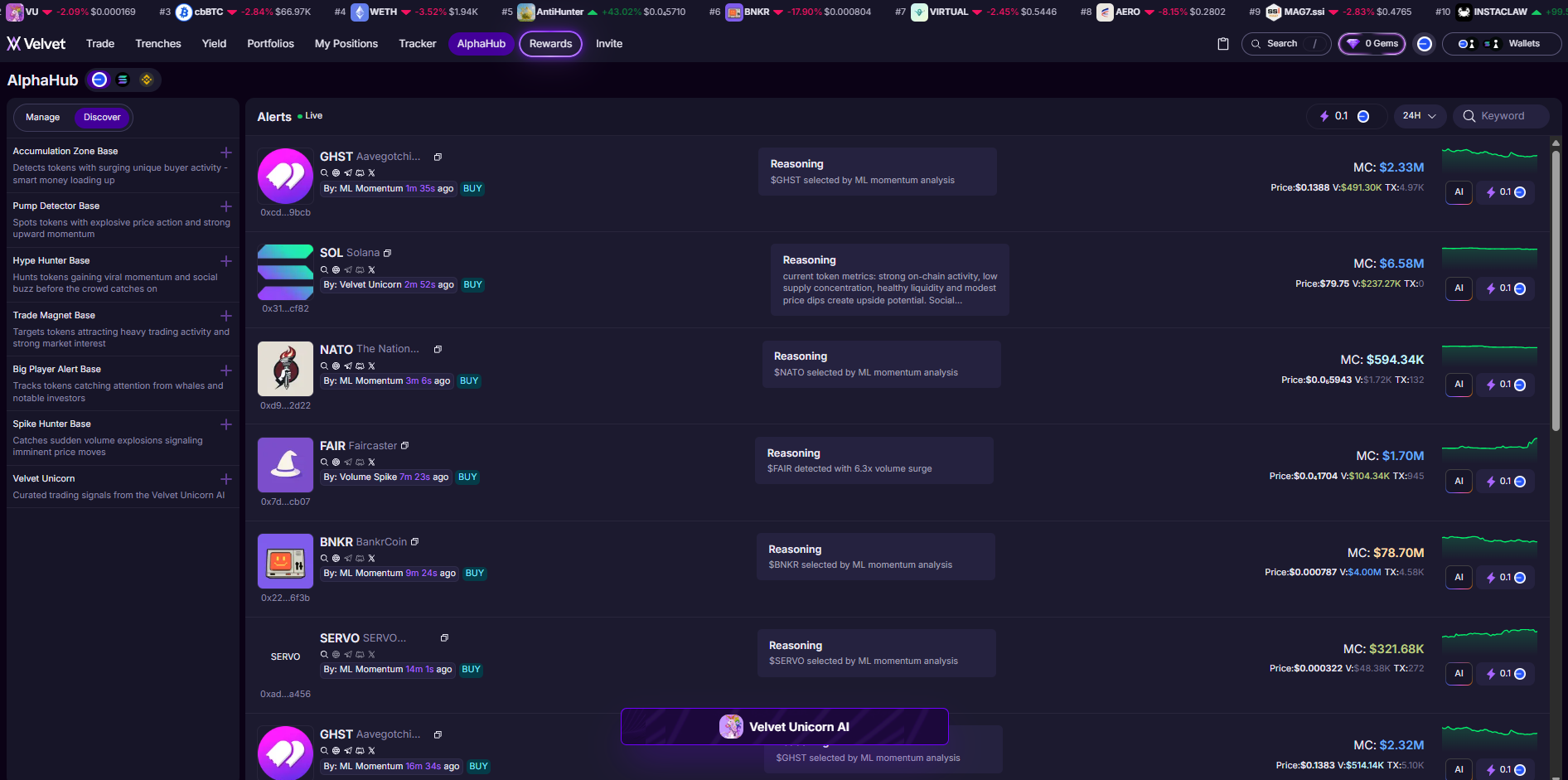 Velvet Unicorn: Curated trading signals powered by the Velvet Unicorn AI.