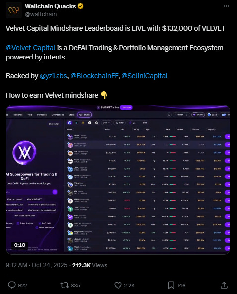New $VELVET Listings, Wallchain Campaign for quackers, DeFAI Livestream, Trenches Upgrades, Prompt-to-Strategy on the way, Epoch 4 of Gems, Nigerian Community Activations, and more!