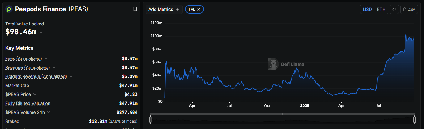 Since launching in early 2024, Peapods has grown to be one of the most exciting lending platforms in DeFi with ~$100m in TVL.